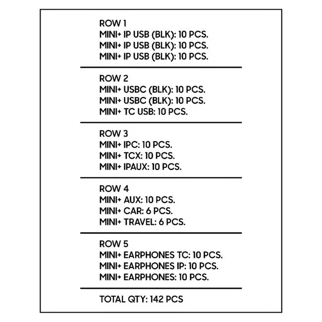 UPLUS ACCESSORIES EARPHONES + CHARGING ADAPTER + CAR ADAPTER + USB CABLE 142CT DISPLAY